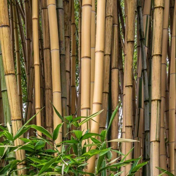 - Äußere Merkmale: Tutul Bambus zeichnet sich durch seine gelblichen Halme mit dunklen Flecken aus, was ihm ein charakteristisches und attraktives Erscheinungsbild verleiht. Die Stämme können in der Größe variieren, bleiben aber in der Regel dünner und werden nicht so hoch wie die von den größeren Bambusarten Giant und Tali, macht dies aber durch sein auffälliges Aussehen wett.