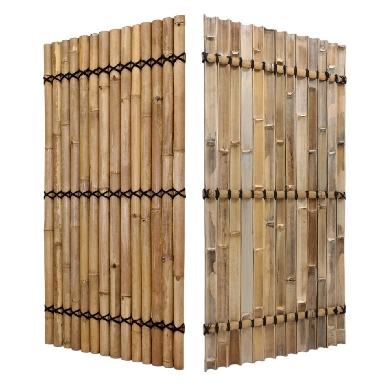 Dieses einzigartige Bambuselement wird aus sorgfältig ausgewählten Bambus-Halbschalen gefertigt, die der Länge nach geteilt und von Hand weiterverarbeitet wurden. Die einzelnen Halbschalen sind auf mehreren Querlatten aus Bambus verschraubt, was dem Element Stabilität und Struktur verleiht. Verbunden werden die Teile mit einer dekorativen schwarzen Kokosfaserschnur, die nicht nur für zusätzliche Festigkeit sorgt, sondern dem Objekt auch seinen charakteristischen japanischen Stil verleiht – schlicht, klar und naturnah. Das Bambuselement ZENKO eignet sich ideal als Wanddekoration, Sichtschutz auf Balkon & Terrassen als Raumteiler oder stilvolles Designelement im Innenbereich. Es bringt die ruhige, zeitlose Ästhetik fernöstlicher Gestaltung in dein Zuhause. Optional kann das Element auf Wunsch geölt oder unbehandelt belassen werden – ganz im Sinne eines individuellen Naturdesigns.