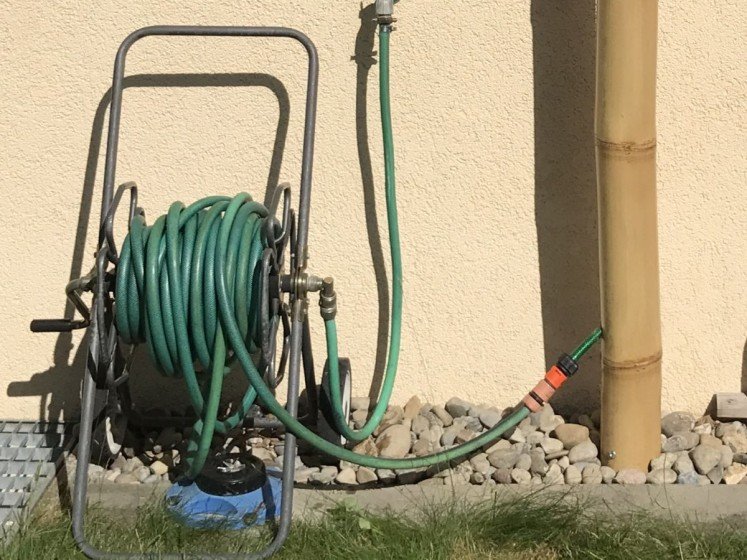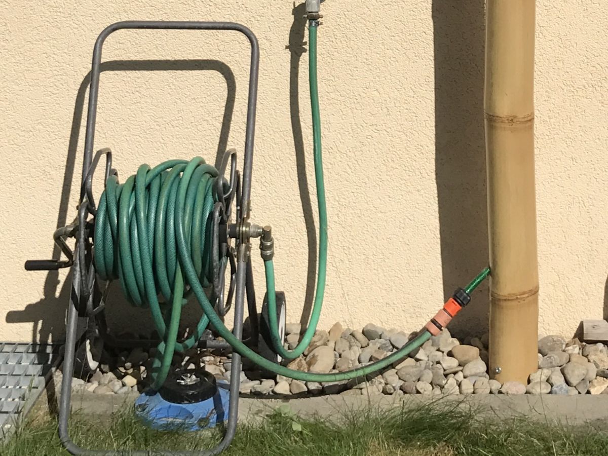 Die Bambus Gartendusche besteht aus einer robusten Bambusstange, die innen einen flexiblen Schlauch führt. Am unteren Ende ist dieser mit einem hochwertigen Kupplungsventil ausgestattet, das sich problemlos an jeden handelsüblichen Gartenschlauch anschließen lässt.