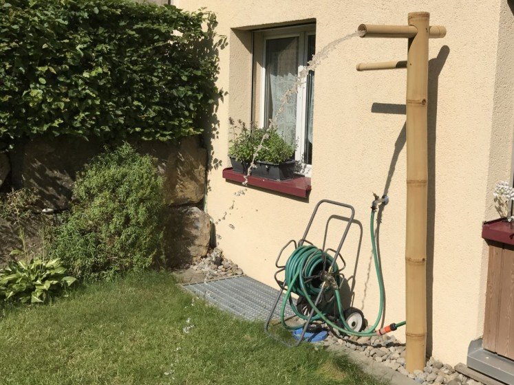 Die Bambus Gartendusche wird bei uns ab Lager hergestellt, aus robustem und dicken Giant Bambusrohr – Ein echter Hingucker! Die Bambus Gartendusche – Ideal für spontane Gartenpartys oder den schnellen Einsatz im Sommer. Auch perfekt für Outdoor-Duschen nach Sport, Gartenarbeit oder dem Spielen im Freien.