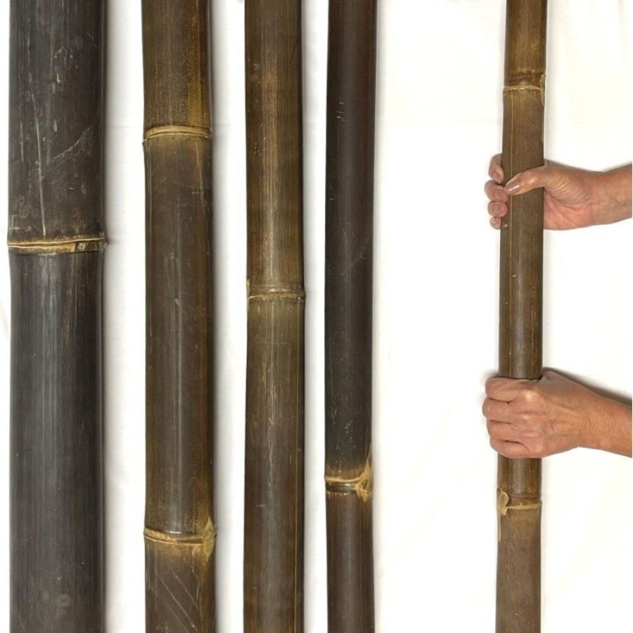 Java Bambusrohre aus Indonesien sind besonders wegen ihrer auffälligen dunklen, fast schwarzen Rinde beliebt, die sie von anderen Arten unterscheidet. Java Bambusrohre sind auch bekannt für seine robusten und geraden Halme, die meistens nicht konisch sind und einen Durchmesser von ca. 5 bis 10 cm erreichen können. Die Bambusstangen haben eine relativ dicke Wandstärke, was sie sehr robust und langlebig macht.